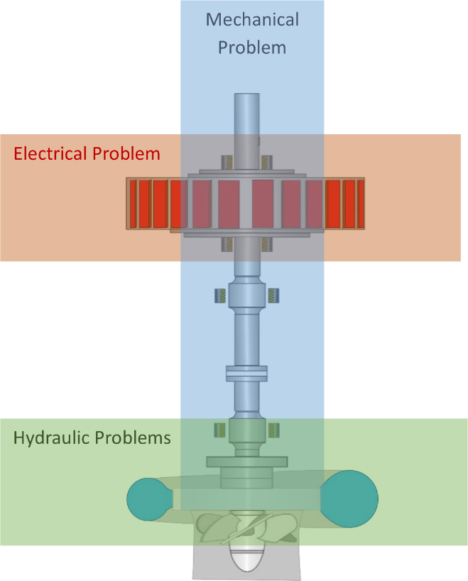 سه نوع اصلی از مشکلات واحد مولد توربین آبی وجود دارد که در بین اکثر آنها رایج است و به عنوان محتمل ترین عیب ها طبقه بندی می شود: