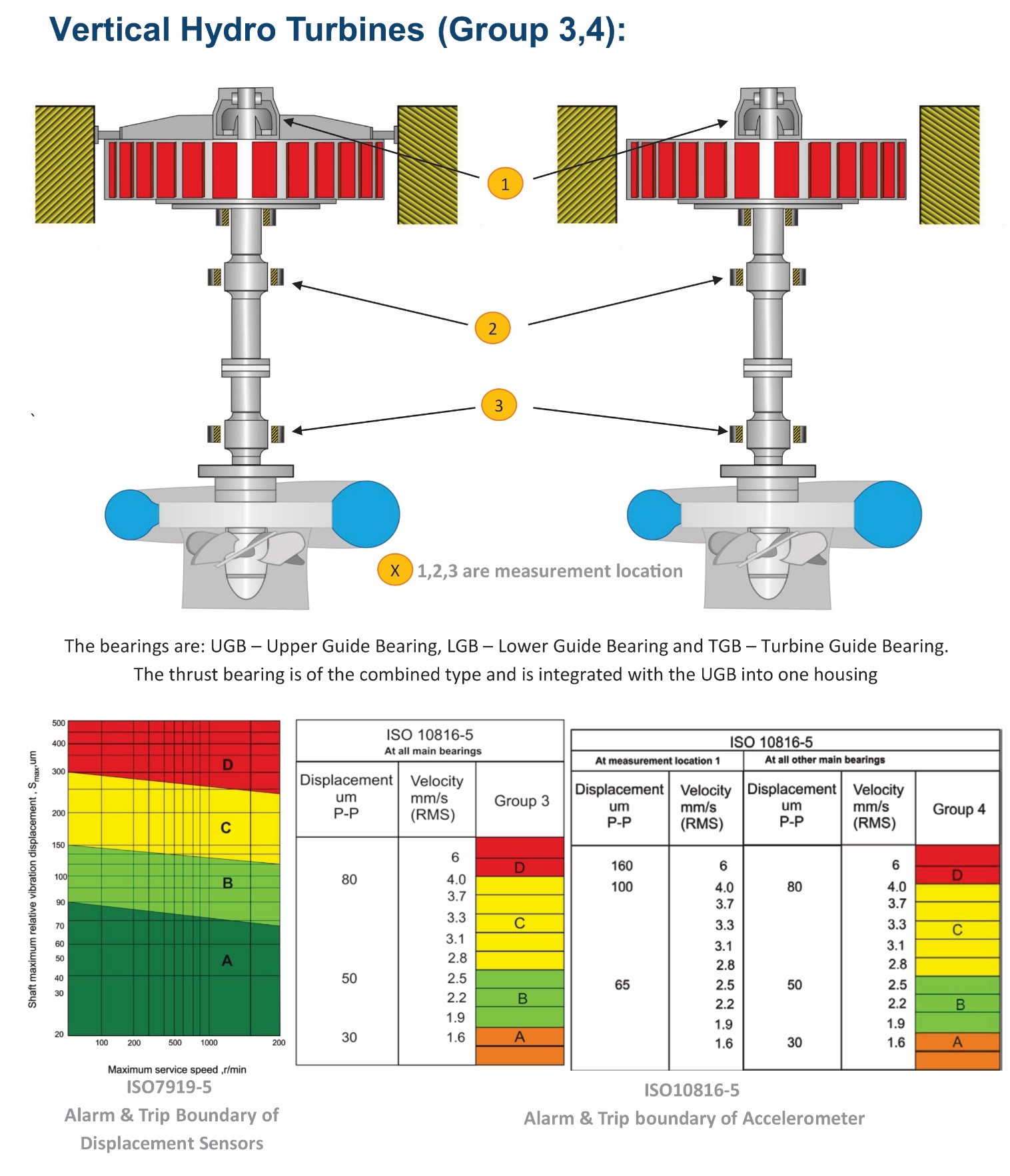 استفاده از سیستم های پایش وضعیت بر پارامترهای آنالیز ارتعاشات و فرآیند و سیستم های حفاظتی ماشین آلات در ماشین های دوار بزرگ مدت هاست که به عنوان یک ابزار ارزشمند در جلوگیری از خرابی قطعات و ماشین آلات شناخته شده است. چندین استاندارد بین المللی منحصراً برای ماشین آلات آبی ایجاد شده است. برخی از این استانداردها برای معرفی در اینجا خلاصه شده است: