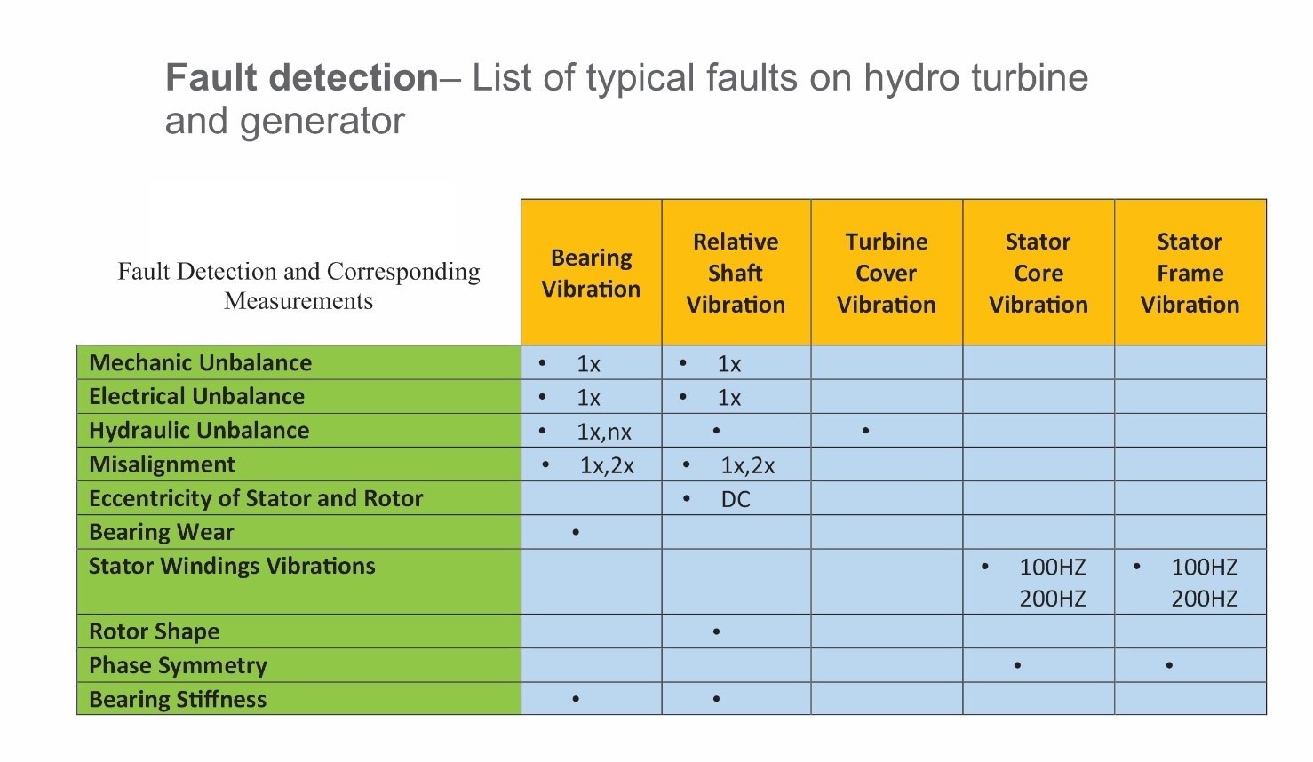 بدون سیستم های پایش سلامت قابل اعتماد برای آنالیز ارتعاشات فعال و محافظت از سلامت ماشین های آبی، تولید برق آبی در مناطق با بار شدید ممکن است با مشکلات جدی مواجه شود. علاوه بر این، توربینهای برق آبی با سرعت پایین کار میکنند و خرابی هایی به اندازه 0.5 هرتز ظاهر کنند. بنابراین تجزیه و تحلیل ارتعاشات واحد نیاز به سخت افزار نظارتی ویژه ای دارد که بتواند این فرکانس های بسیار پایین را تشخیص دهد.