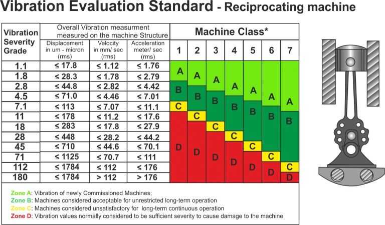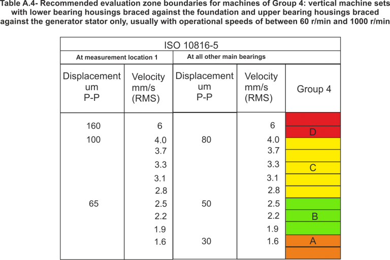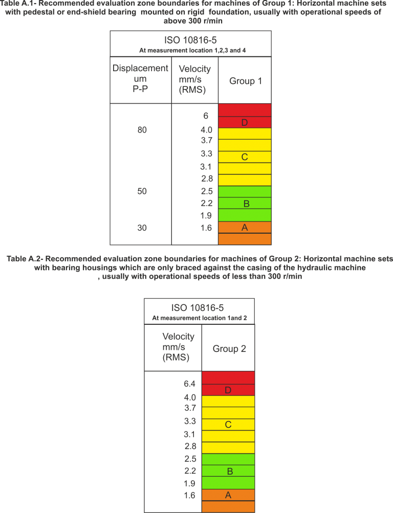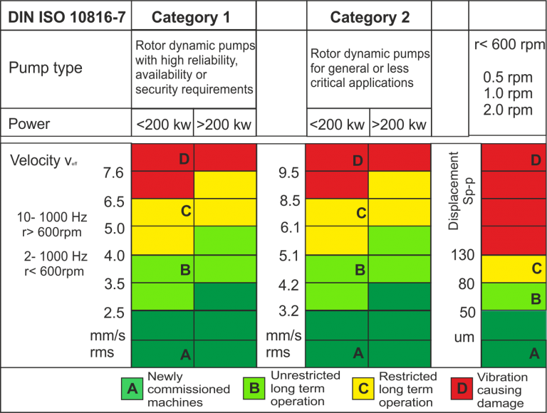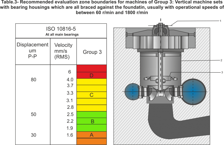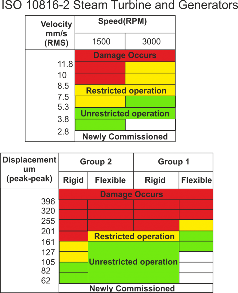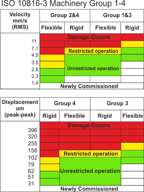 ISO 10816 بر اساس برخی از تحلیل های آماری داده های قبلی جمع آوری شده توسط ISO TC 108، مرجعی مانند ارتعاشات مجاز و شرایط هشدار یا خطر را برای ماشین آلات مختلف ارائه می دهد.