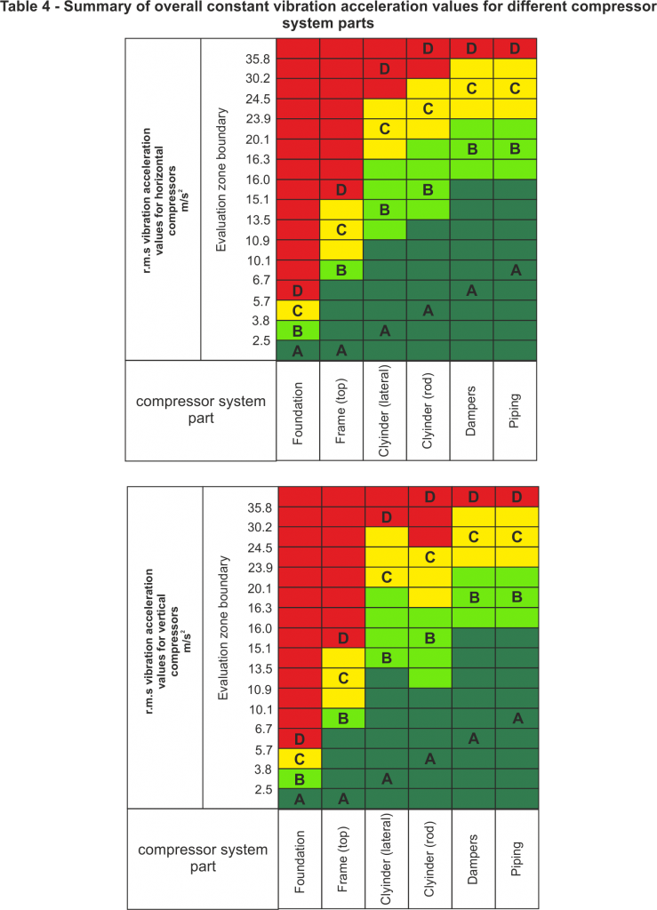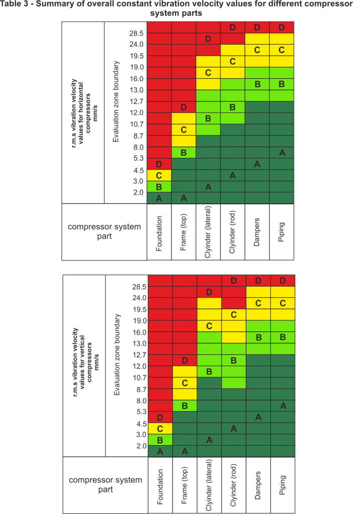 این بخش از ISO 10816 روش ها و دستورالعمل هایی را برای اندازه گیری و طبقه بندی ارتعاشات مکانیکی سیستم های کمپرسور رفت و برگشتی ارائه می دهد. مقادیر ارتعاش در درجه اول برای طبقه بندی ارتعاشات سیستم کمپرسور و جلوگیری از مشکلات خستگی قطعات در سیستم کمپرسور رفت و برگشتی، مانند فونداسیون، کمپرسور، دمپرها، لوله کشی و تجهیزات کمکی نصب شده بر روی سیستم کمپرسور تعریف می شوند.
